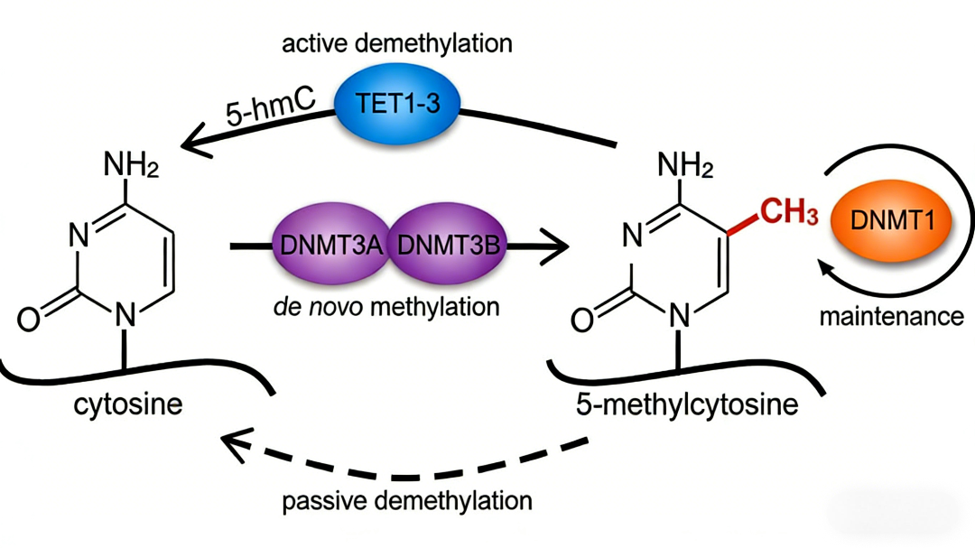 表觀遺傳學是研究在不改變DNA序列的前提下,通過化學修飾調控基因活性的學科。這類修飾不涉及遺傳密碼本身的變化,卻能穩定地影響基因的表達模式,并在細胞分裂中可能被繼承。其作用對象廣泛,涵蓋DNA、RNA及組蛋白等多個層面。例如,組蛋白尾部可發生甲基化、乙酰化等多種共價修飾,這些修飾通過改變染色質的空間結構與電化學特性,決定基因轉錄的“開"或“關"。DNA甲基化正是其中一種核心的DNA層面修飾,因其在發育、疾病中的關鍵作用而成為研究焦點。區別于微小RNA等調控方式,DNA甲基化直接作用于基因組DNA,建立了一種相對穩定且可遺傳的“分子標記"系統,深刻影響著細胞命運與機體健康。
